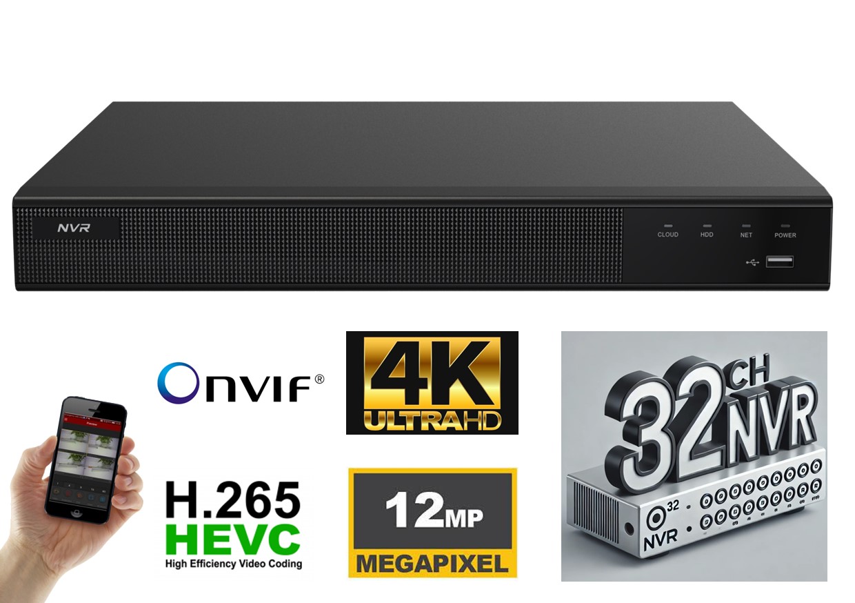 - Špičková podpora kamer: Připojení až 32 IP kamer s maximálním rozlišením 12MP, podporuje více rozlišení včetně 4K UHD.
