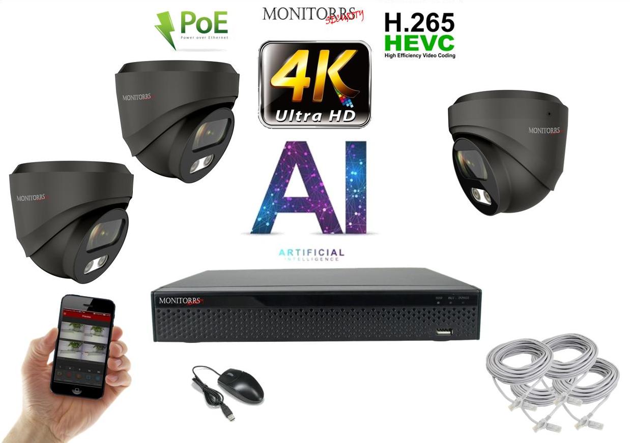Monitorrs Security 4K IP 3 kamerový set 8 Mpix GDome (6377K3)