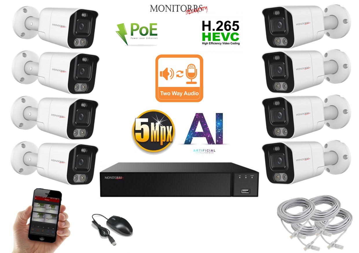 Monitorrs Security AI Aktiv IP 8 kamerový set 5 Mpix WTube (6078K8)