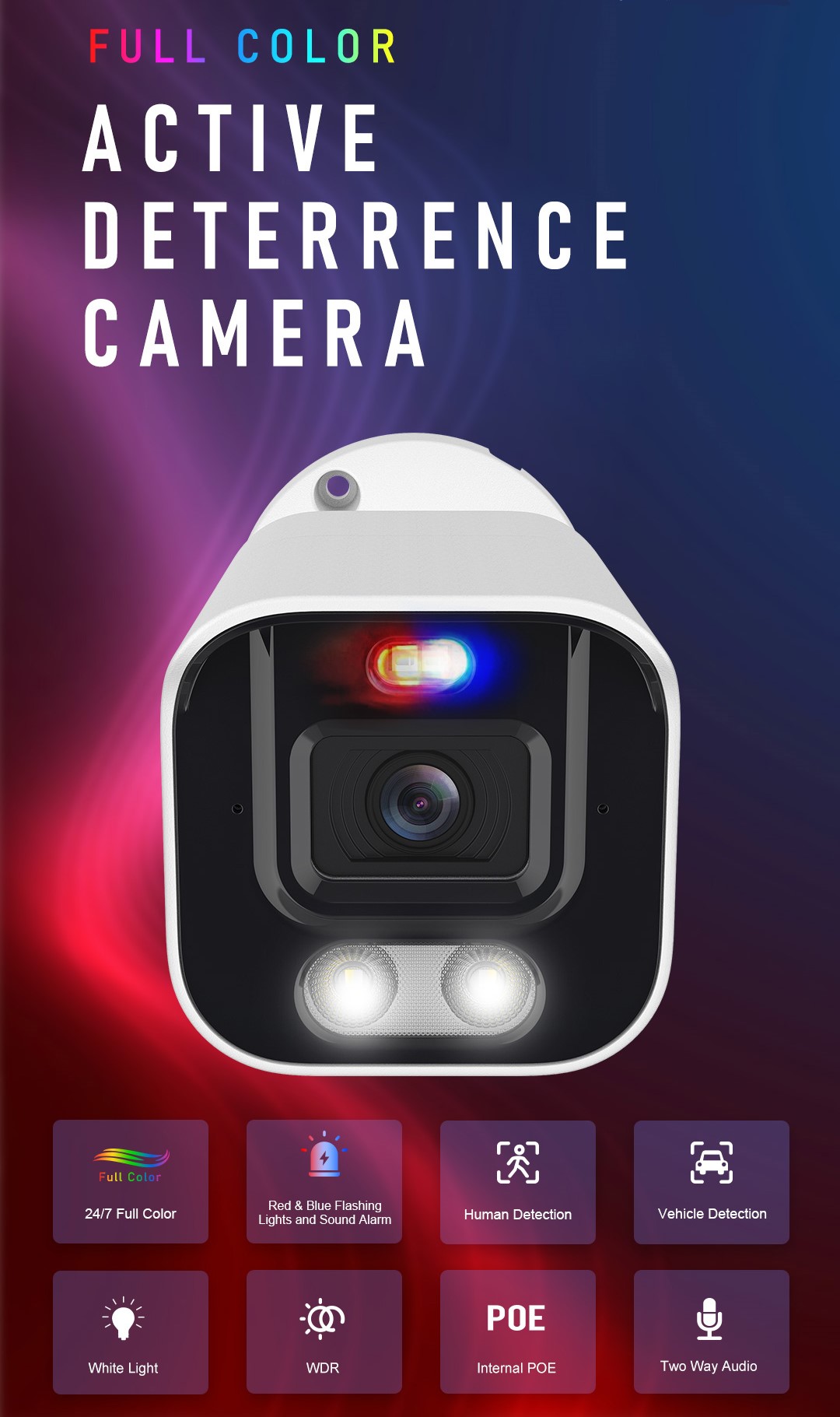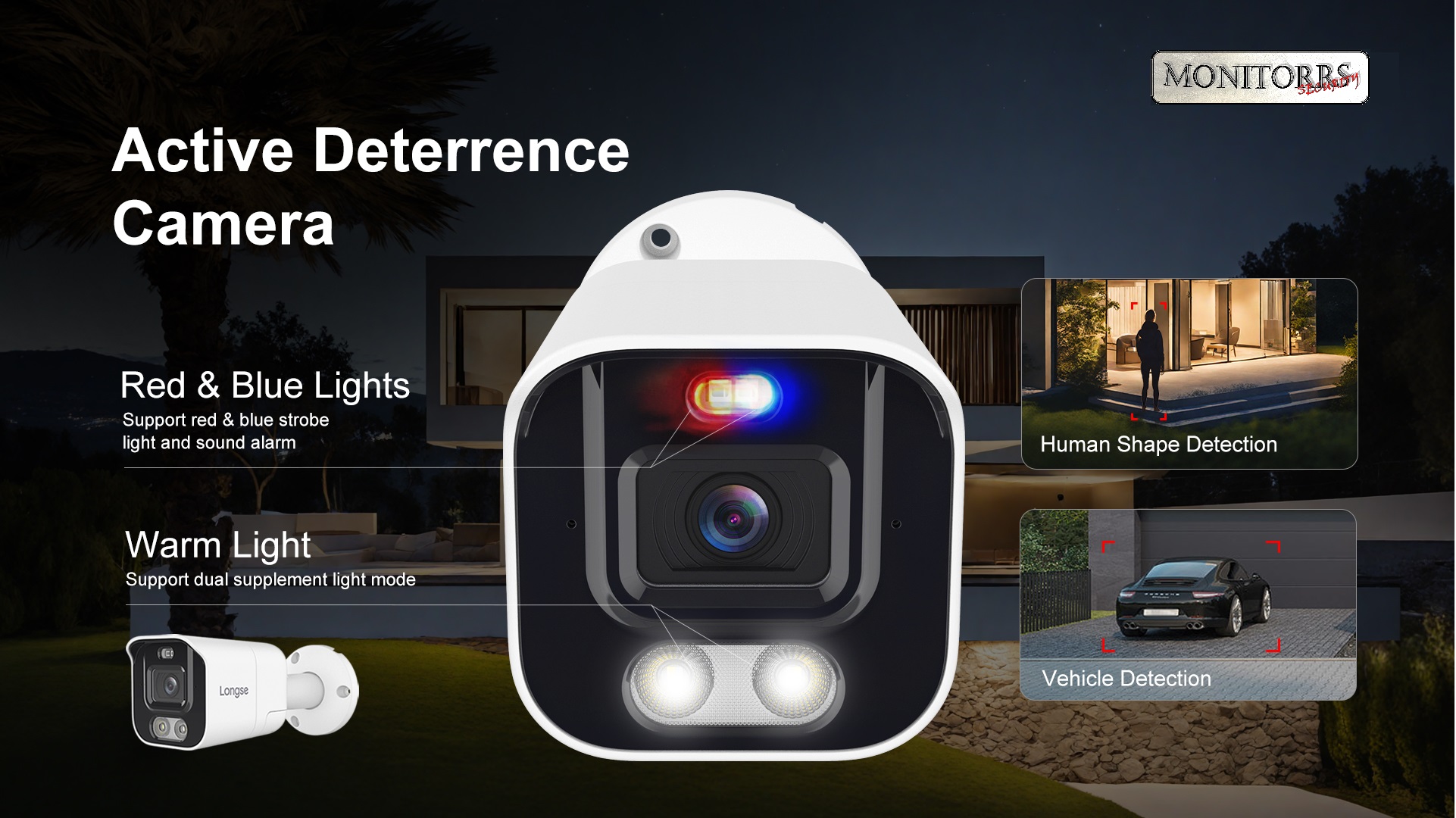 • Inteligentní IP kamera s aktivním zvukovým a světelným odstrašením;