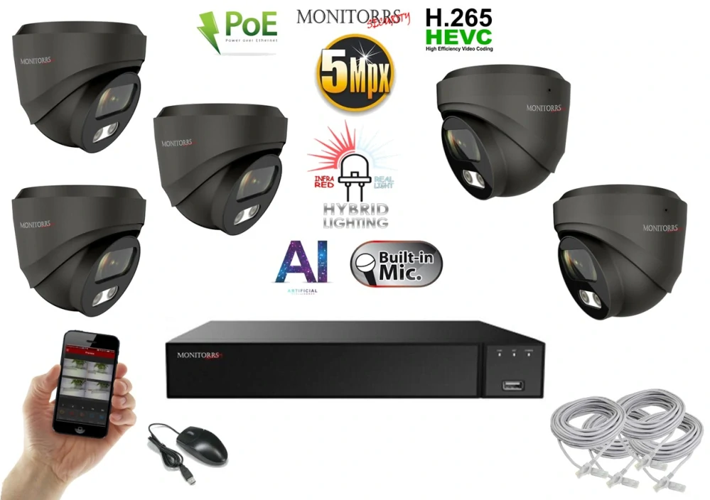 - Monitorrs Security AI Hybrid light IP 5 kamerový set 5 Mpix GDome (6142K5)