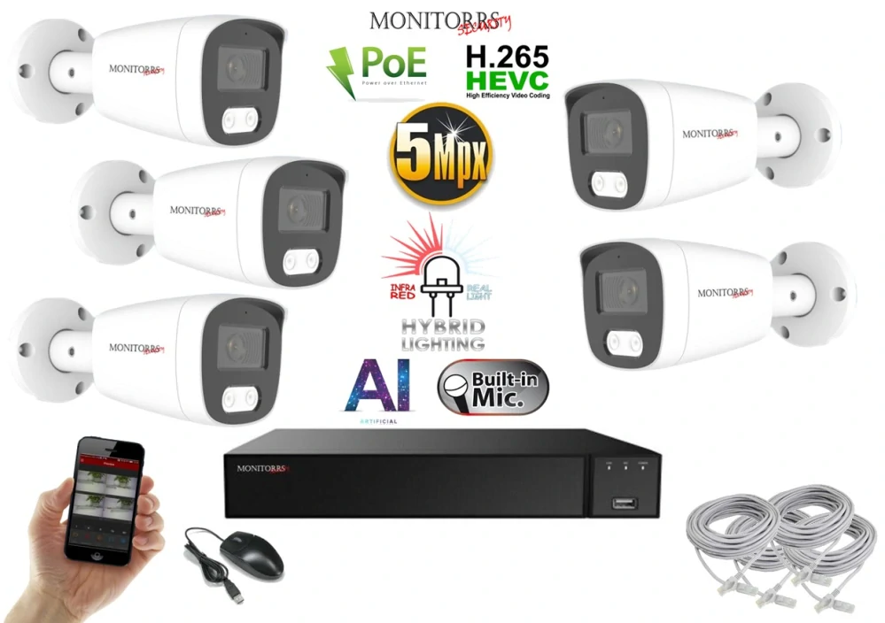 - Monitorrs Security AI Hybrid light IP 5 kamerový set 5 Mpix WTube (6143K5)