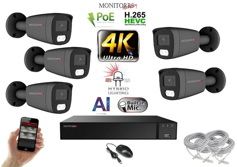 - Monitorrs Security AI Hybrid Light IP 5 kamerový set 8 Mpix GTube (6483K5)