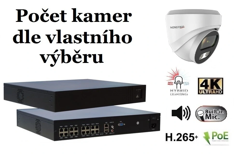 - Monitorrs Security AI hybrid light IP kamerový set 8 Mpix WDome (6481K8+)