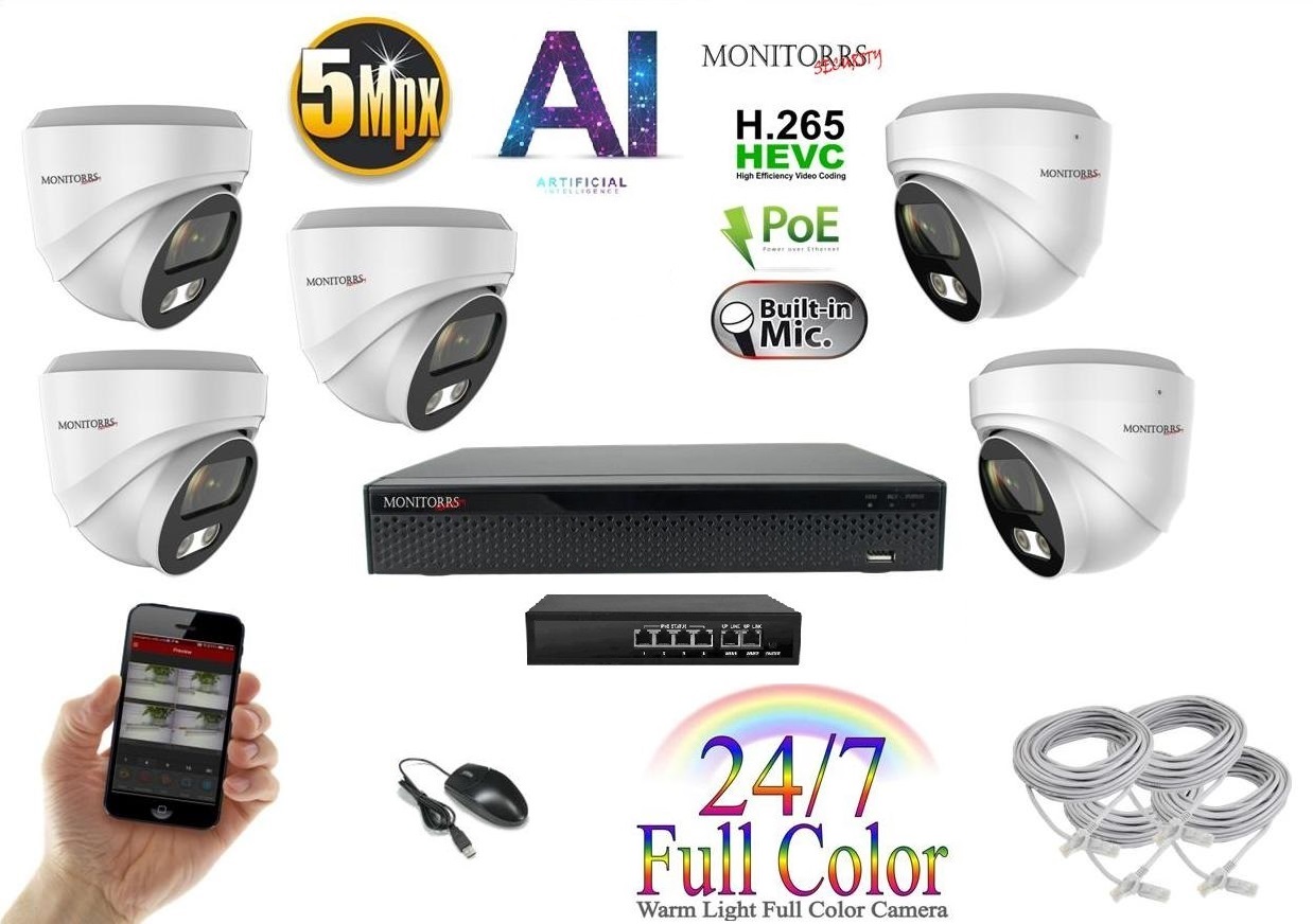 Monitorrs Security Full Color AI IP 5 kamerový set se switchem WDome (6022K5B)