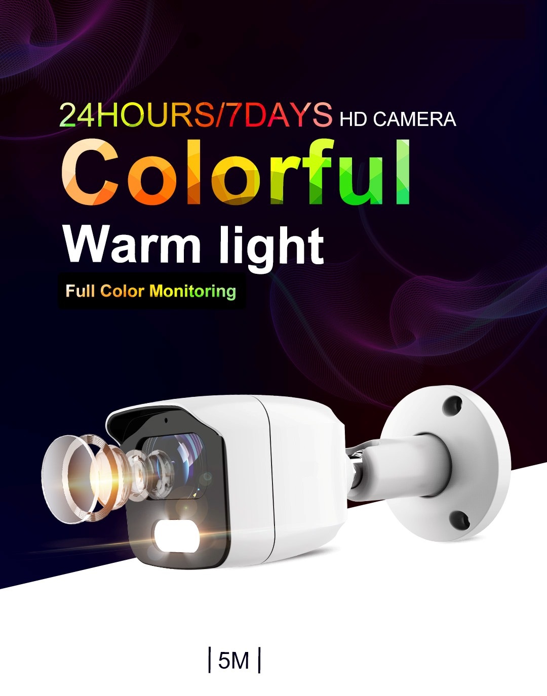 - nepřetržité barevné snímání: Spolehněte se na 24 hodinové barevné snímání díky vysoce citlivému snímači (0,001 Lux) a LED světlům s reálným viditelným světlem (LED 4000K) , až do 25m