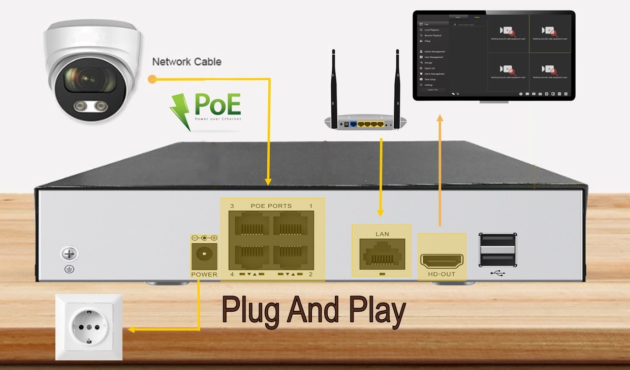 ✅ 9 kanálový rekordér ( 4 PoE vstupy ) – Možnost na dodatečné rozšíření kamerového systému pomocí externího zařízení.