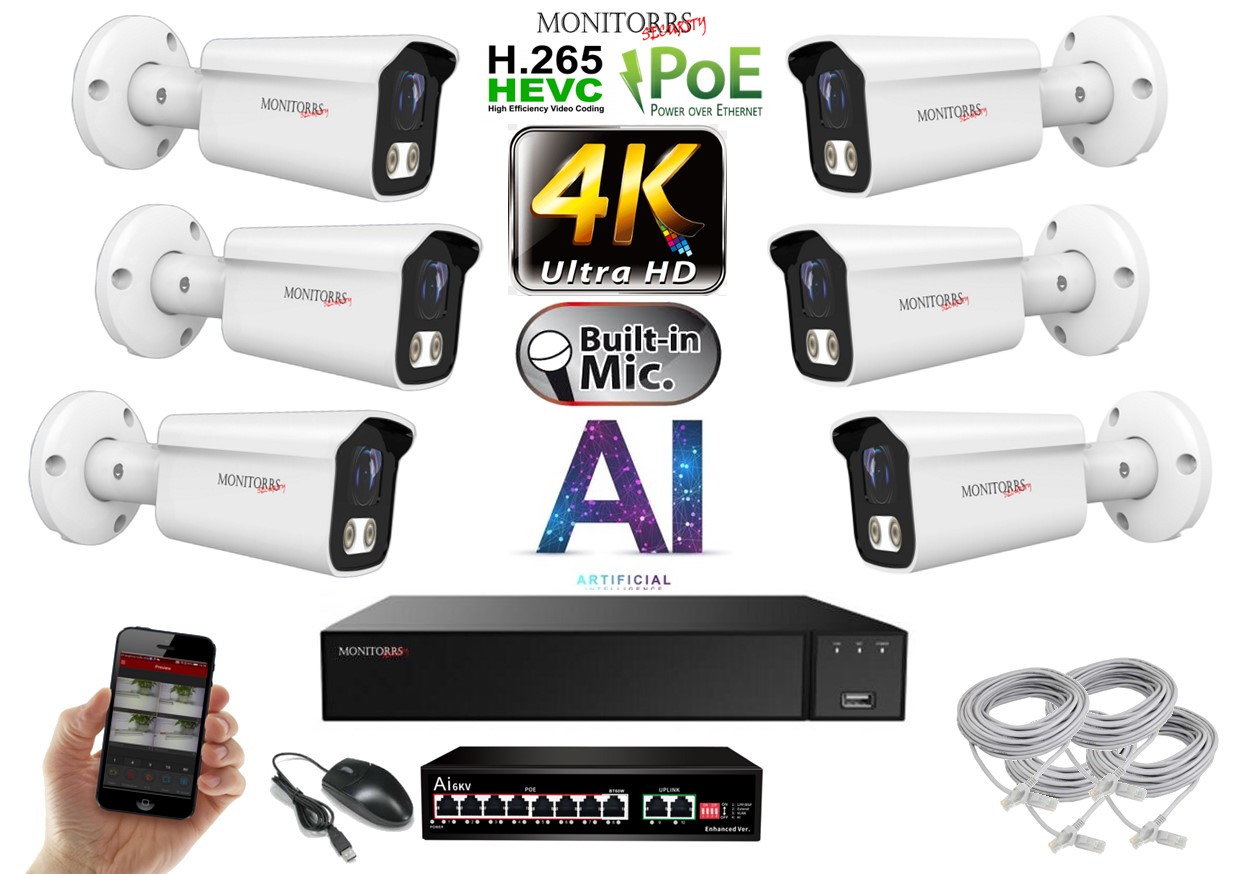 MS 4K IP 6 kamerový set se switchem 8 Mpix WTube (6378K6B)