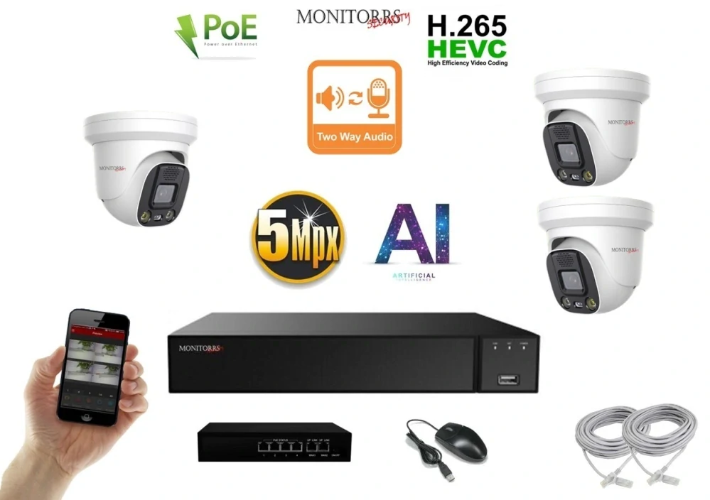 - MS AI Aktiv IP 3 kamerový set se switchem 5 Mpix WDome (6077K3B)