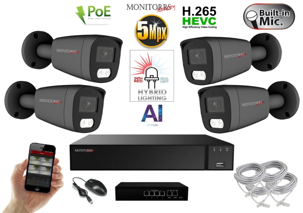 - MS AI Hybrid light IP 4 kamerový set se switchem 5 Mpix GTube (6144K4B)