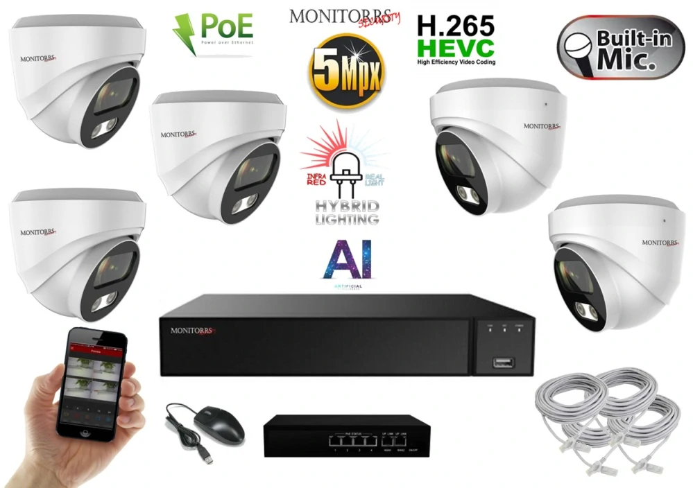 - MS AI Hybrid light IP 5 kamerový set se switchem 5 Mpix WDome (6141K5B)