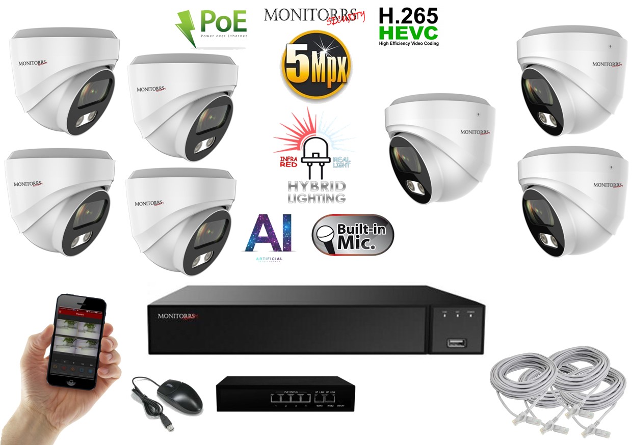 MS AI Hybrid light IP 7 kamerový set se switchem 5 Mpix WDome (6141K7B)