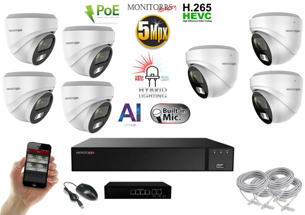 - MS AI Hybrid light IP 7 kamerový set se switchem 5 Mpix WDome (6141K7B)