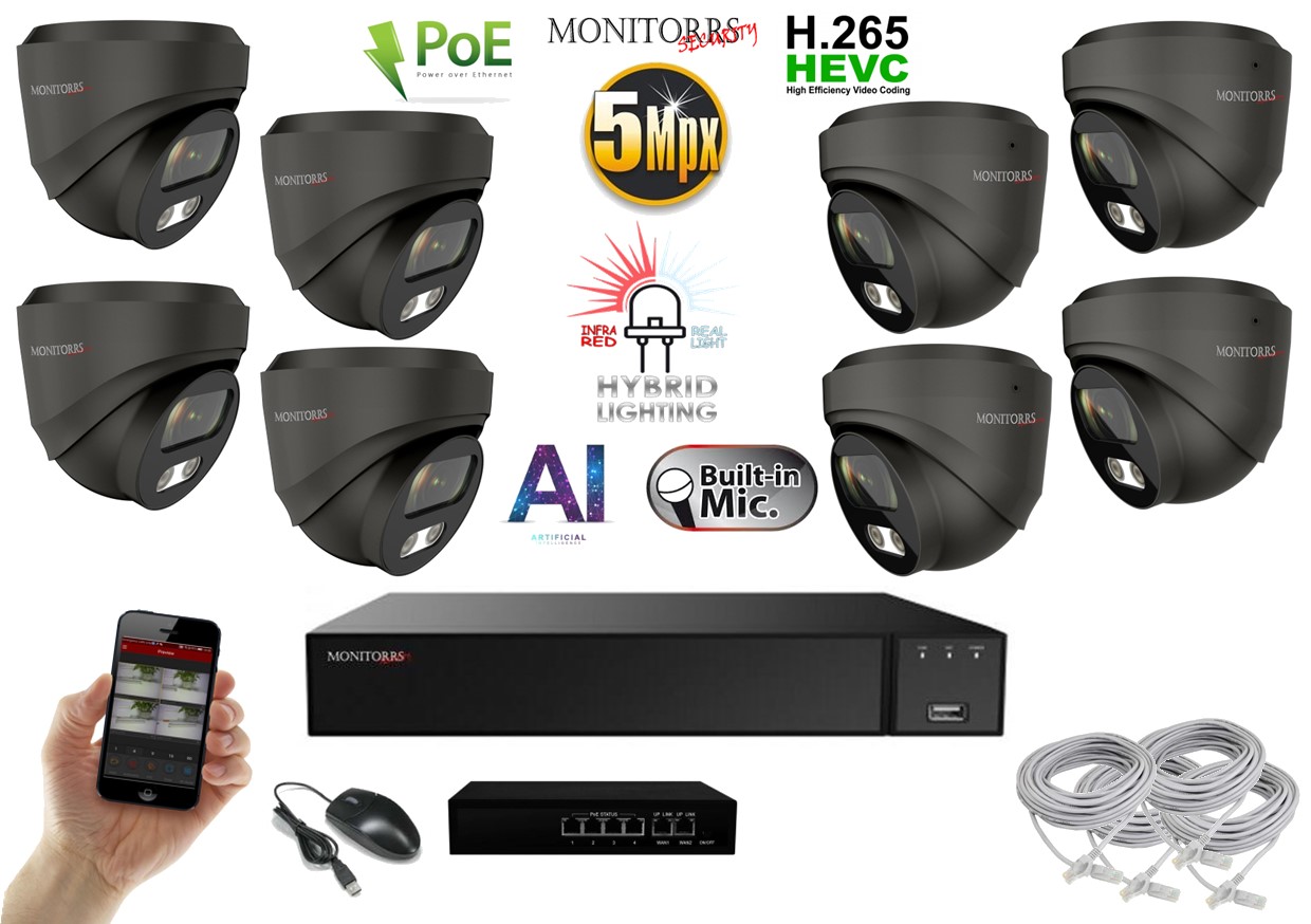 MS AI Hybrid light IP 8 kamerový set se switchem 5 Mpix GDome (6142K8B)