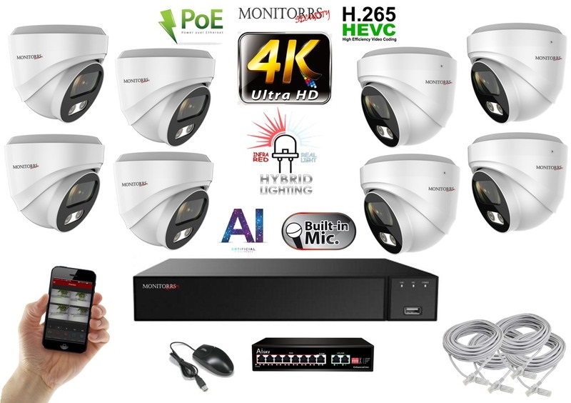 MS AI Hybrid Light IP 8 kamerový set se switchem 8 Mpix WDome (6481K8B)