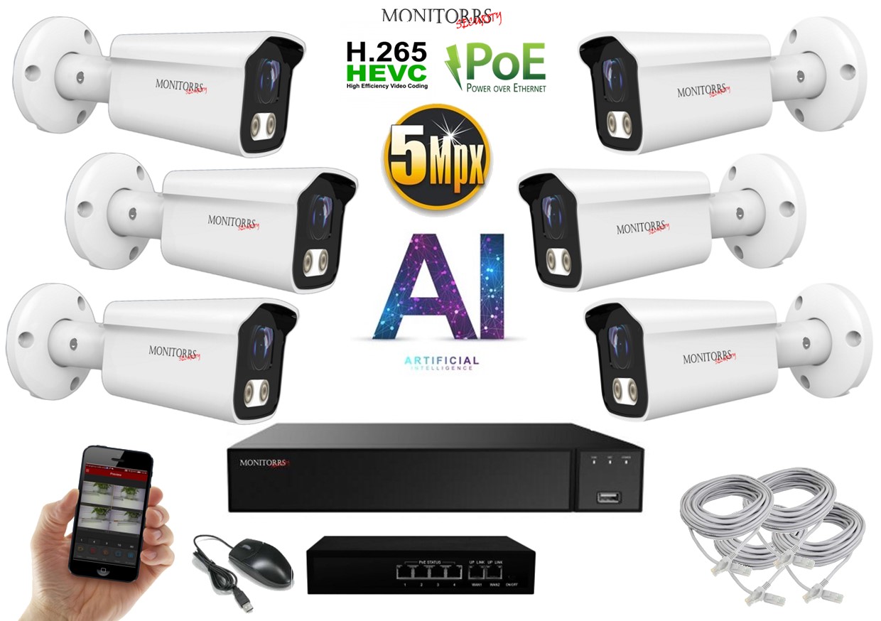 MS AI IP 6 kamerový set se switchem 5 Mpix WTube (6372K6B)