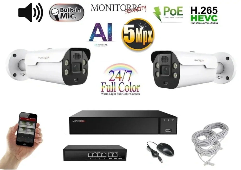 - MS AI IP Aktiv 2 kamerový set se switchem 5 Mpix WTube (6079K2B)