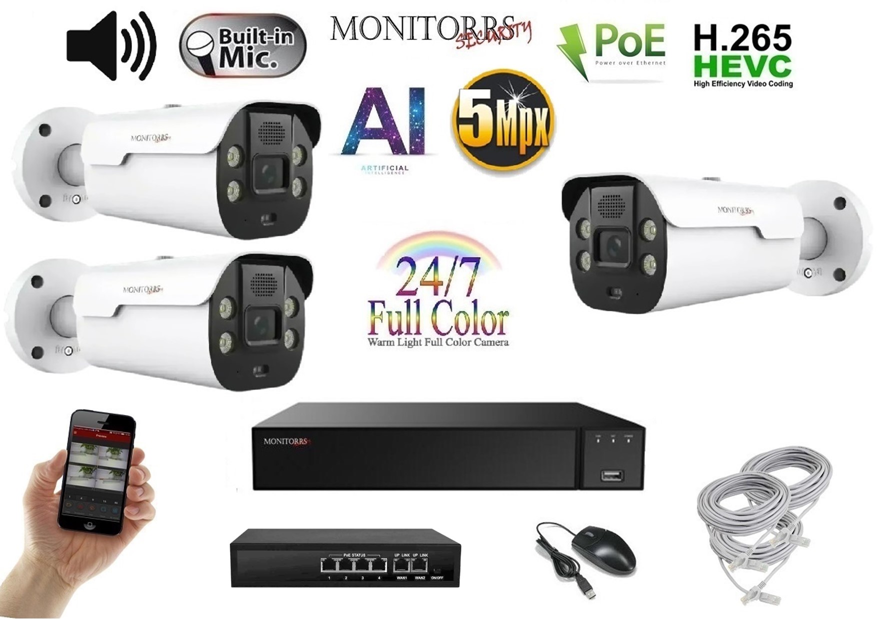 - MS AI IP Aktiv 3 kamerový set se switchem 5 Mpix WTube (6079K3B)