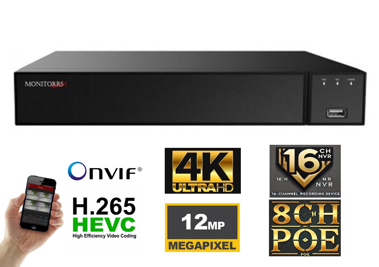 Videorekordér MS NVR3116P8 je vybaven technologií, která umožňuje připojit až 16 IP kamer najednou.