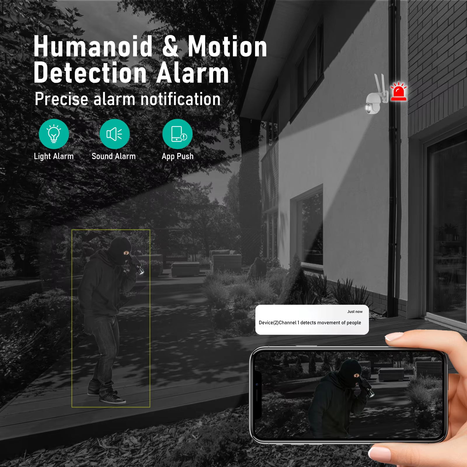 Kamera podporuje detekci osob, a zachytávání snímků, což zvyšuje bezpečnost a umožňuje přesné sledování pohybu ve sledované oblasti.